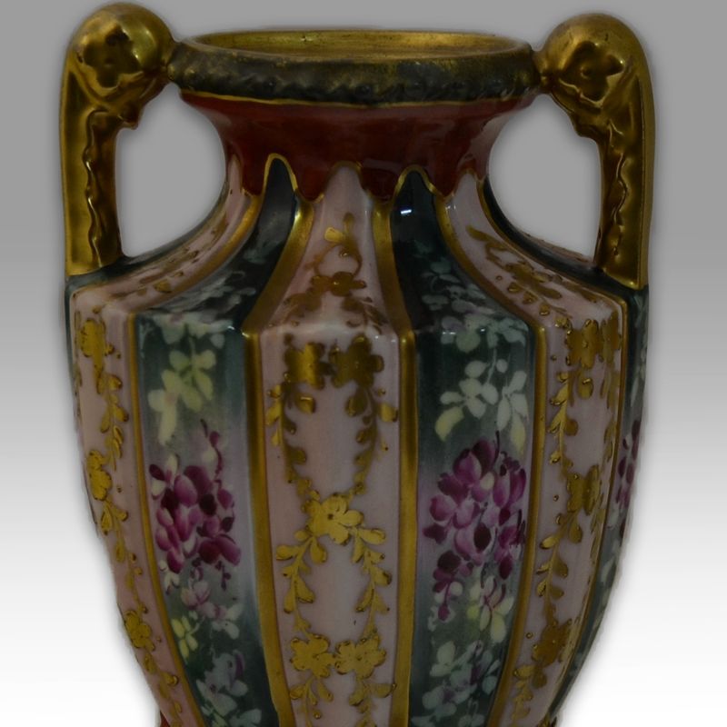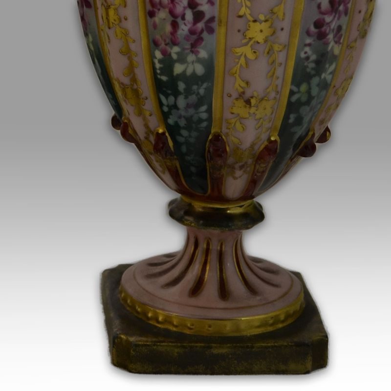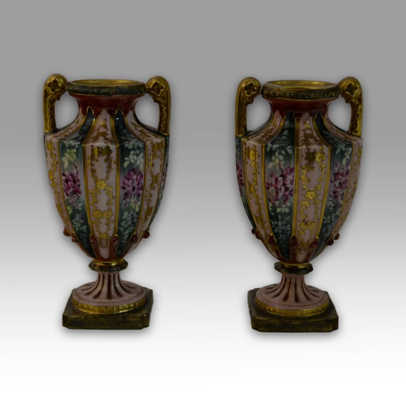 Pair of German Rudolstadt vases, with floral decoration, hand-painted and partially gilded.