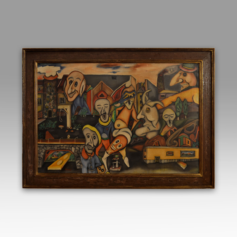 An excellent example of painting from the surrealism movement , which touches on deep issues of society, such as human alienation in an urban and industrial world, internal conflicts and the anguish of existence.