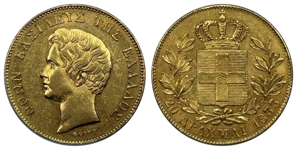 20 drachmas 1833, King Otto of Greece