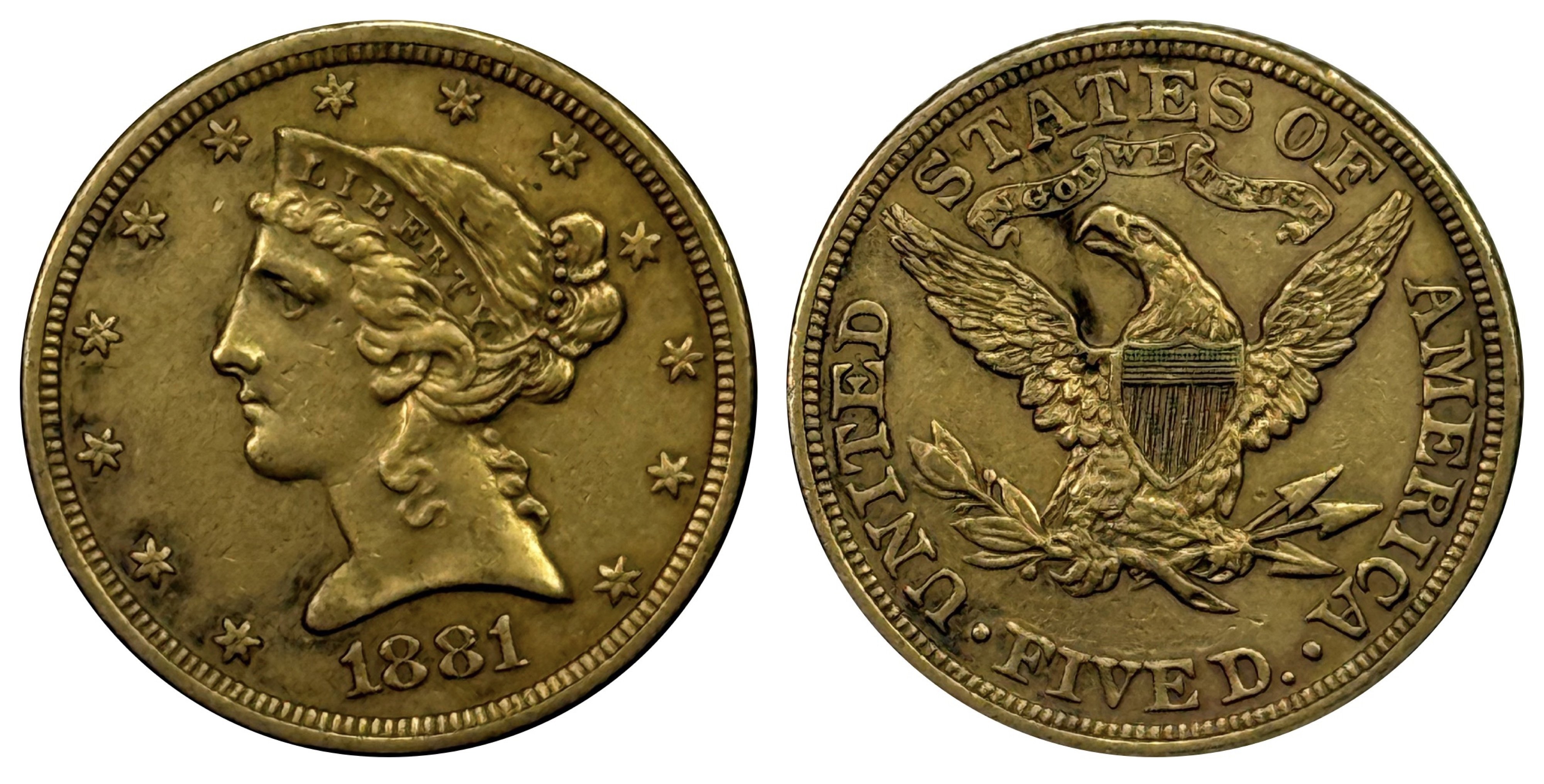 USA 5 Dollars 1881 Liberty head, 8.35g, .900 XF