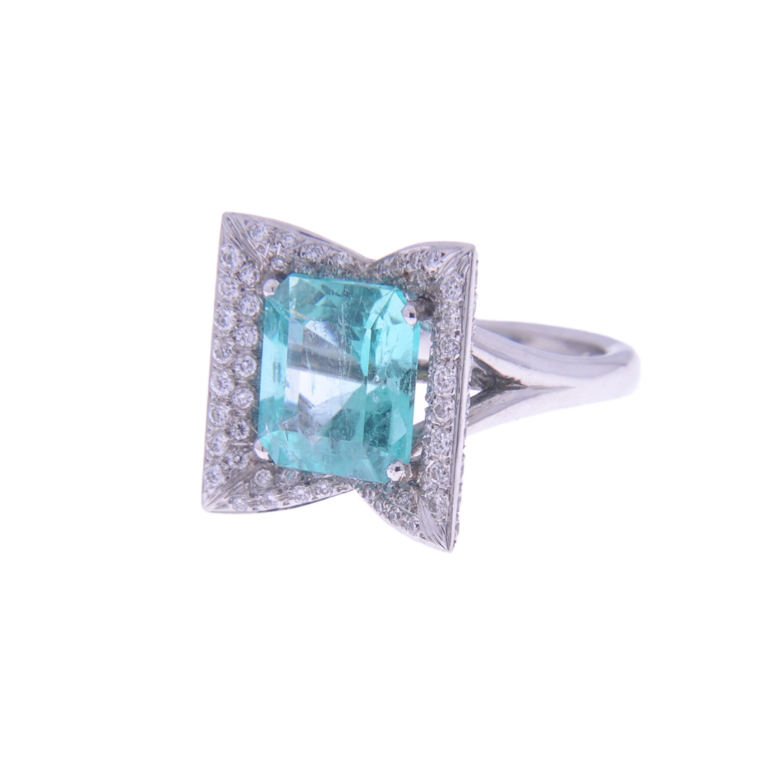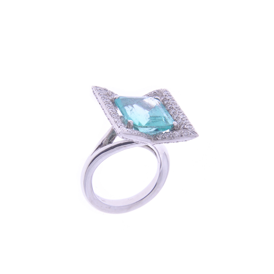 Ring made of 19K White Gold GT Design with a 9.50ct Colombian Emerald and 1.50ct F-VVS1 Diamond.