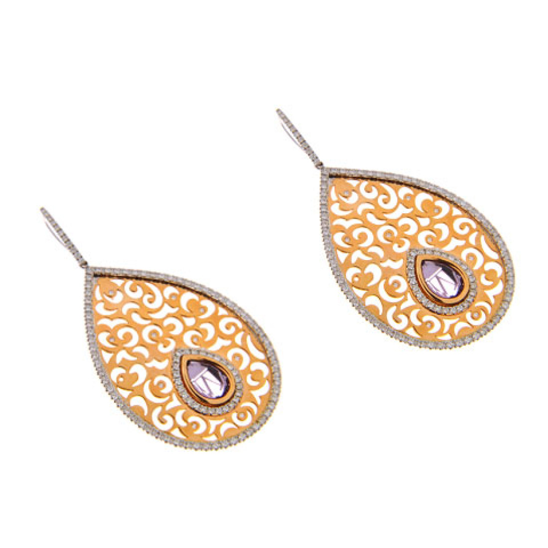 Two-tone Yellow – Pink Gold K18 Andreoli Italy Earrings with 6.29ct F-VVS1 Diamonds and Amethysts pear