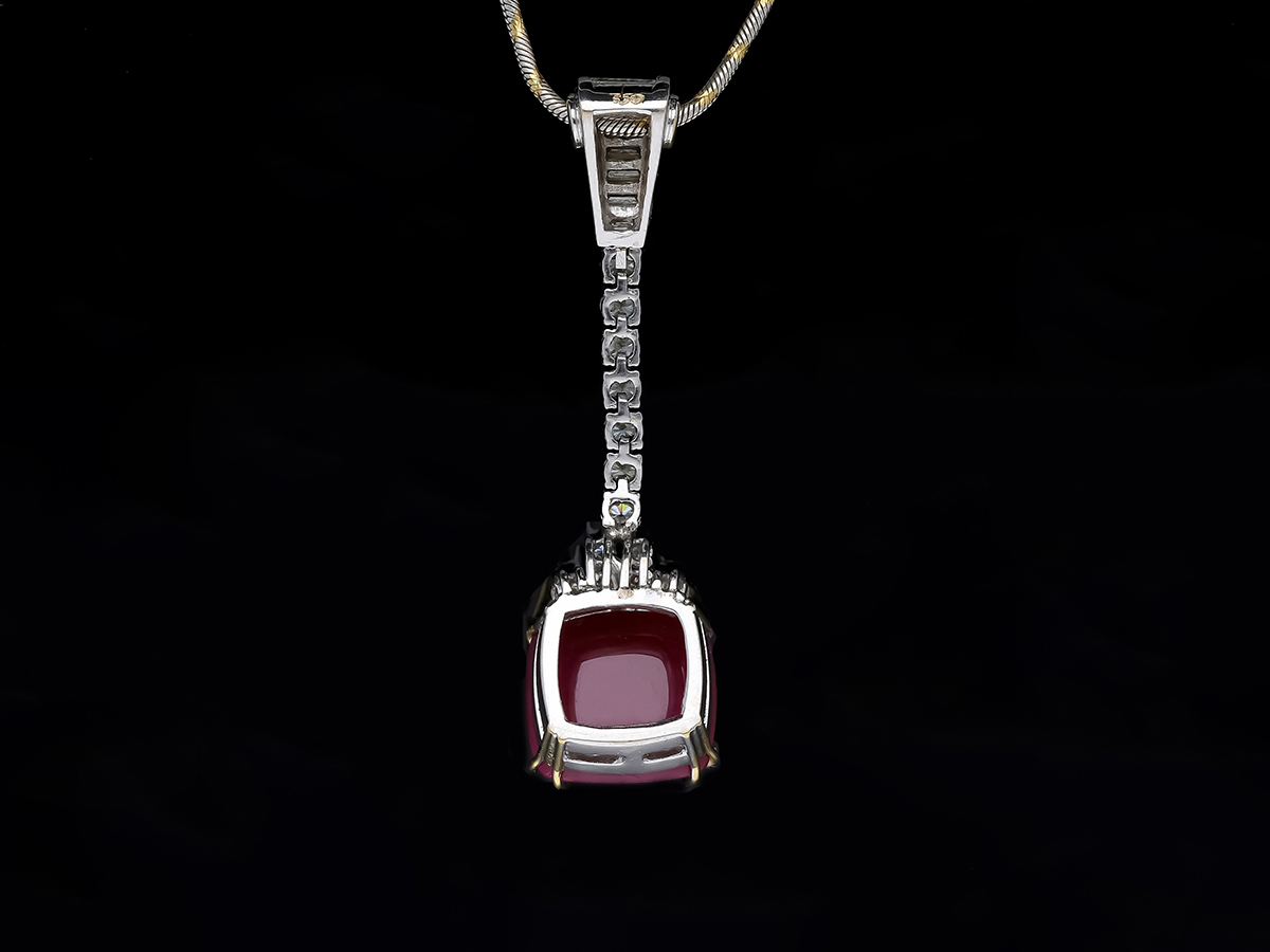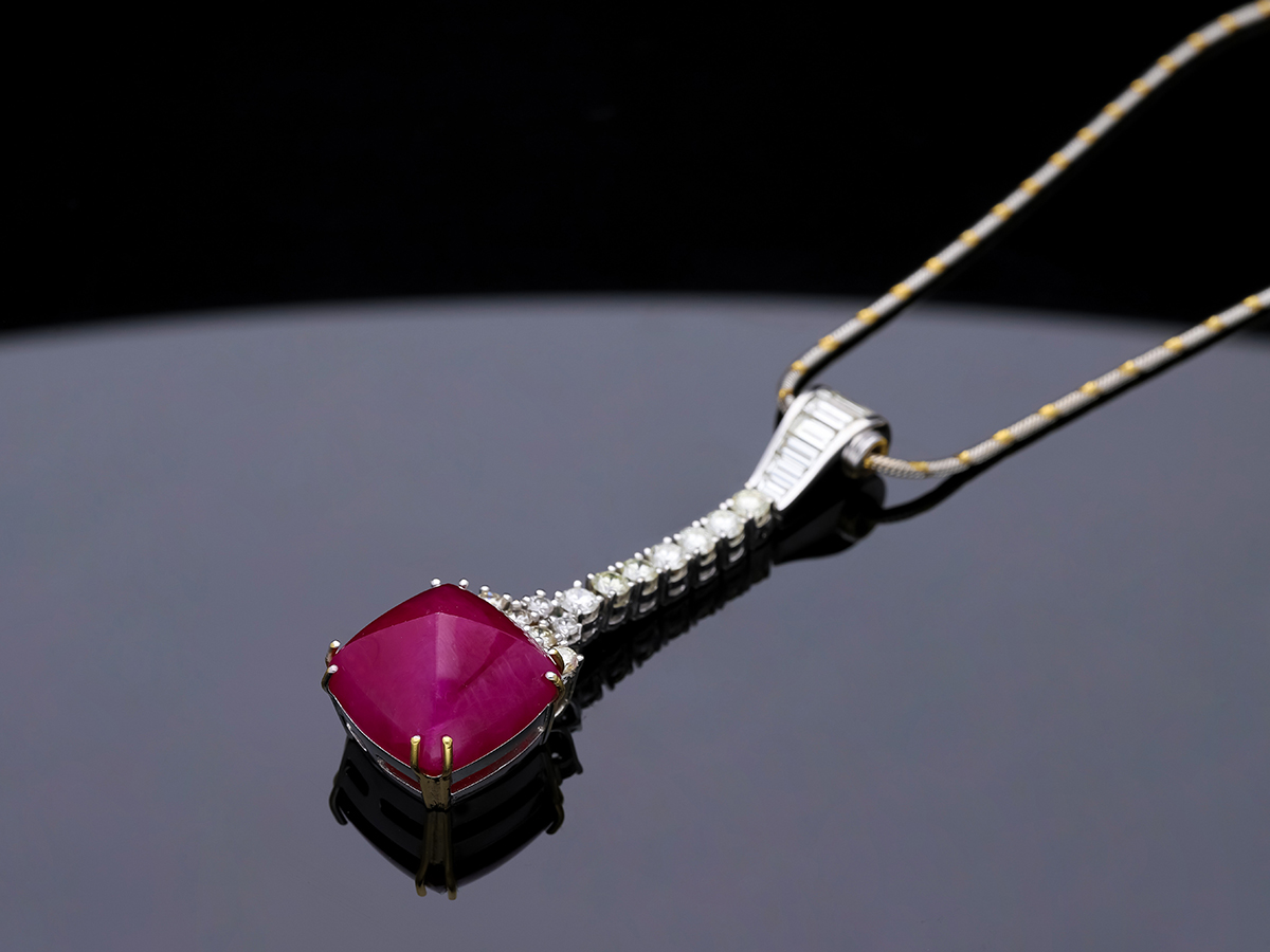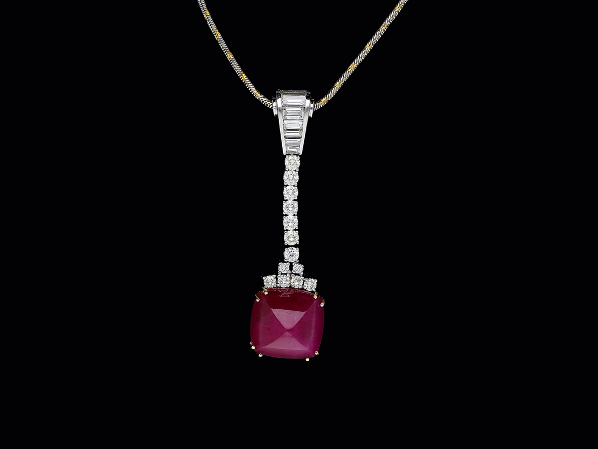 comment Necklace with a natural ruby in sugarloaf cabochon cut