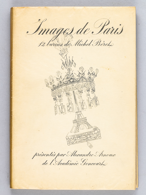 Presented by Alexandre Arnoux, one of the 15 numbered HC copies reserved for the artist, 1 vol. large 8vo in leaf under illustrated folded folder, Atelier Paul Haasen, Editions Lambert-Marie, sd (1948), with 12 engravings under passepartout: Ile Saint-Louis – Notre-Dame – Place de la Concorde – Place de l’Opéra – Place Vendôme – Place Pigalle – Les Tuileries – Place Contrescarpe – Saint-Germain-des-Prés – Les Invalides – La Tour Eiffel – Les Champs-Elysées.